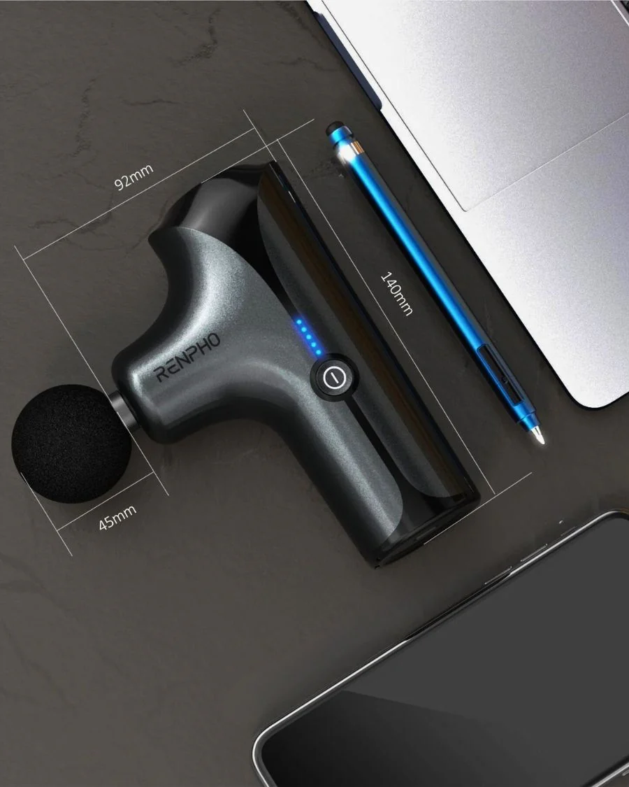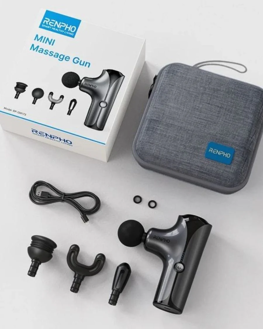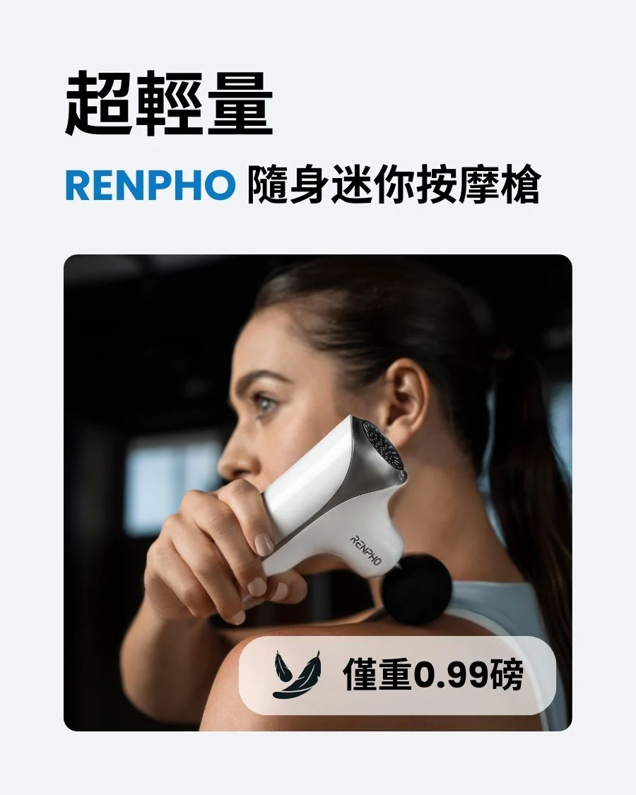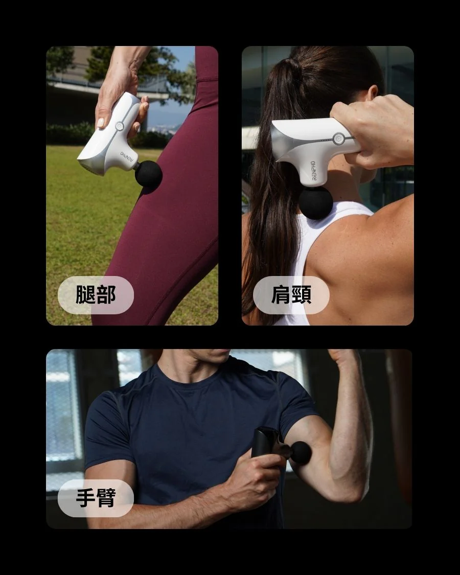.5種強度,配合4款不同形狀的小型按摩槍頭,有助於緩解肌肉酸痛