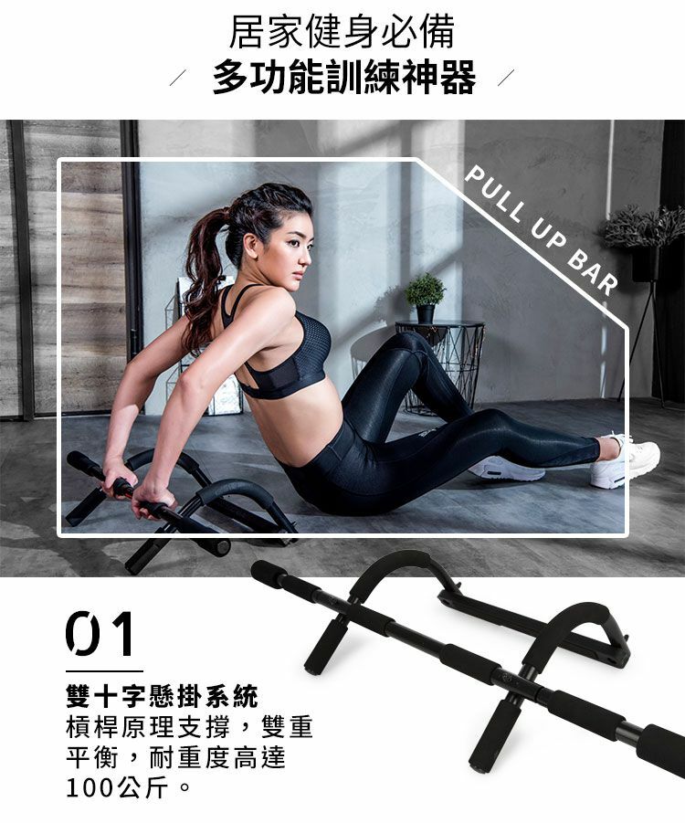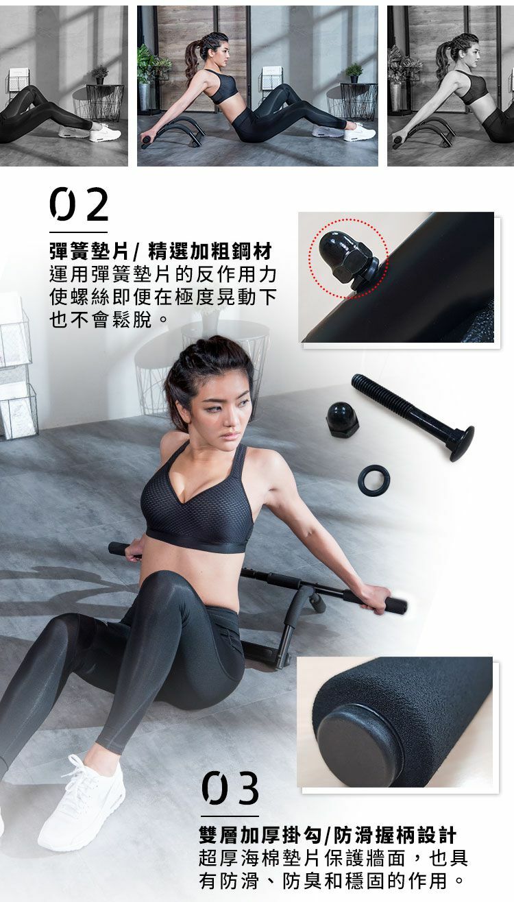 超簡單秒速安裝,雙十字平衡系統、雙層加厚掛勾、防滑握柄以及精選必震鋼材,安全超高運動輔具。可同時做為引體向上和地板訓練輔具,整體性鍛鍊,充分伸展,緩解疲勞。
