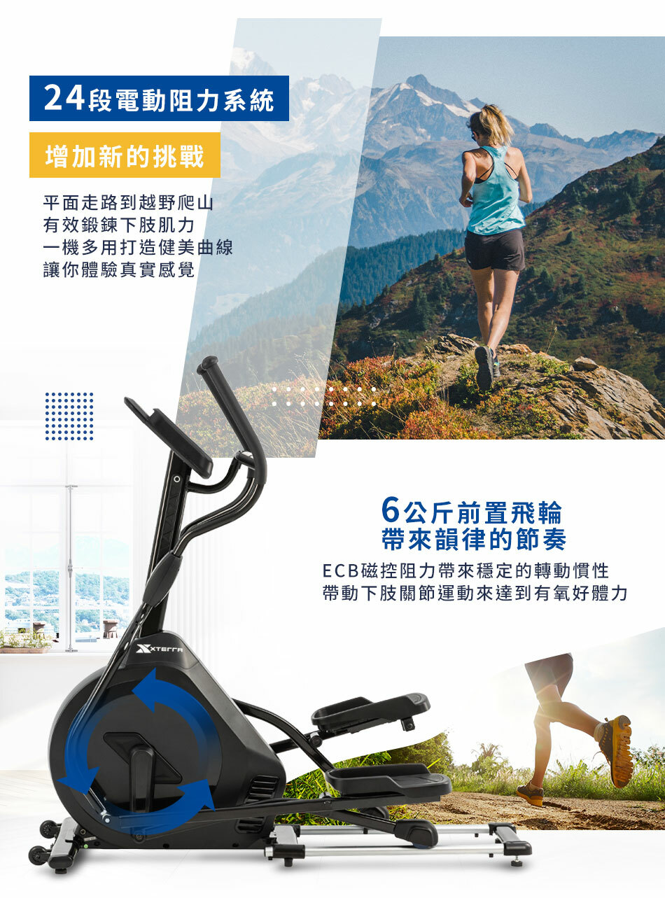 ● 1~24 段阻力段數系統,模擬真實登山情境