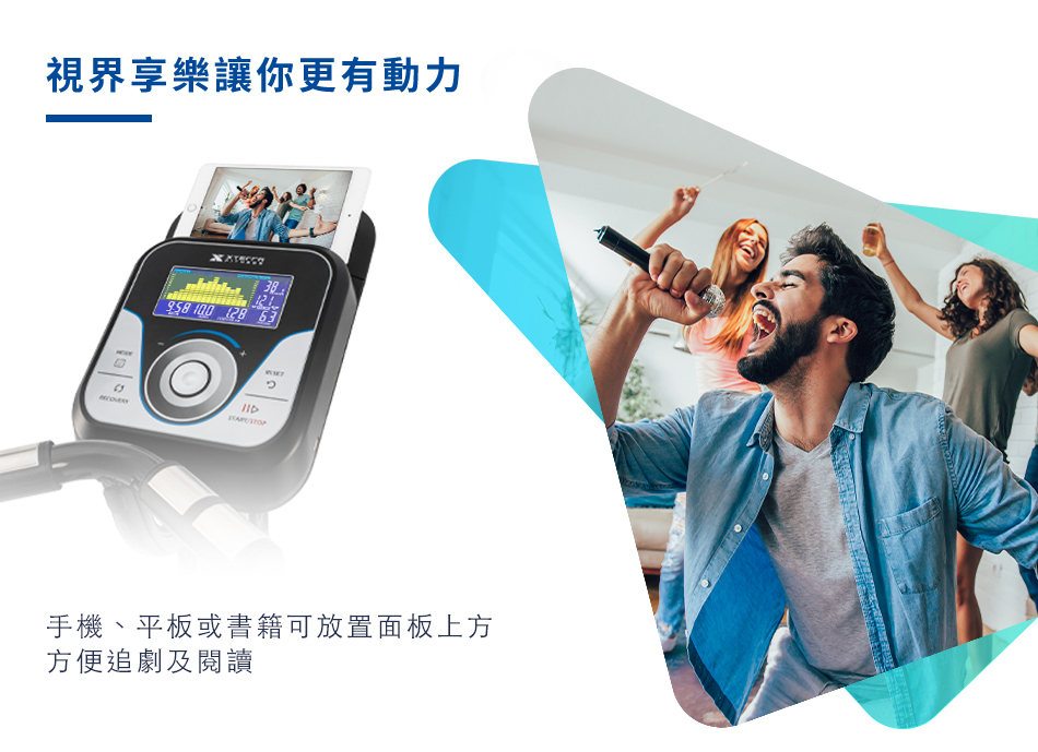 ● 平板支架讓您可以在鍛鍊期間享受更多的娛樂