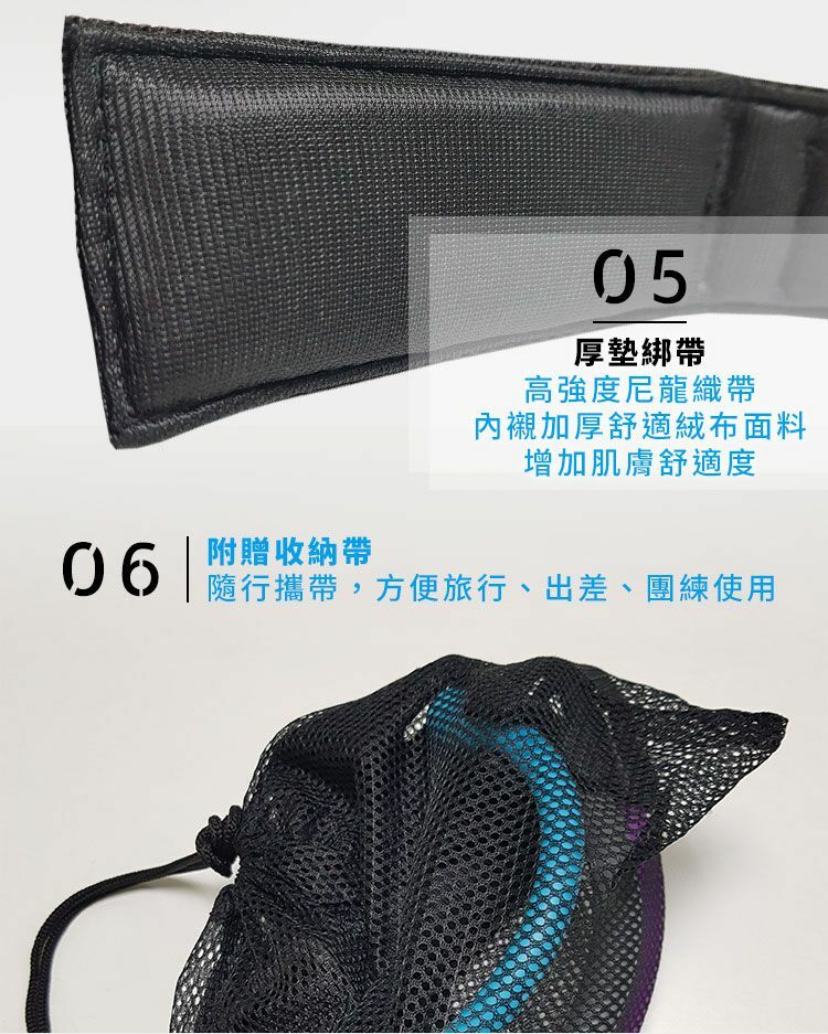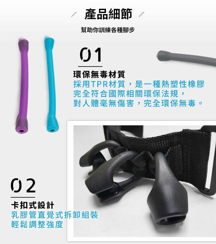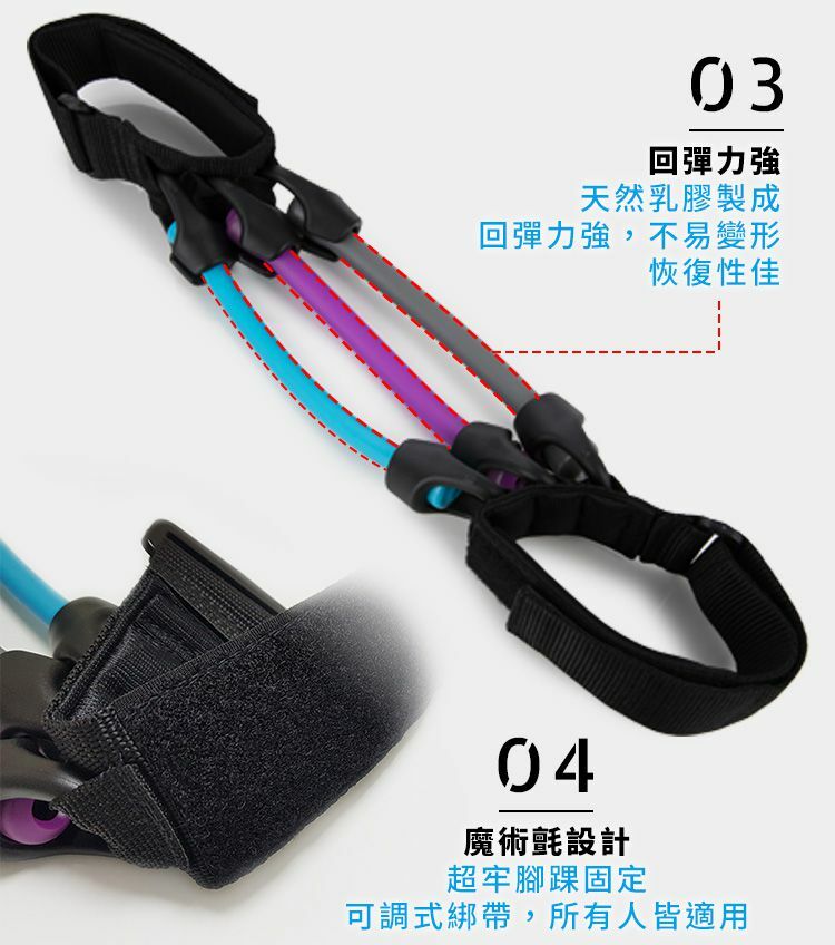 內含3種強度,多層次訓練搭配,卡扣式設計拆裝容易,輕鬆調整阻力強度,環保無毒材質和厚墊綁帶。天然乳膠材質,回彈力強、恢復性佳,下肢訓練特化器,讓你安心運動無負擔。